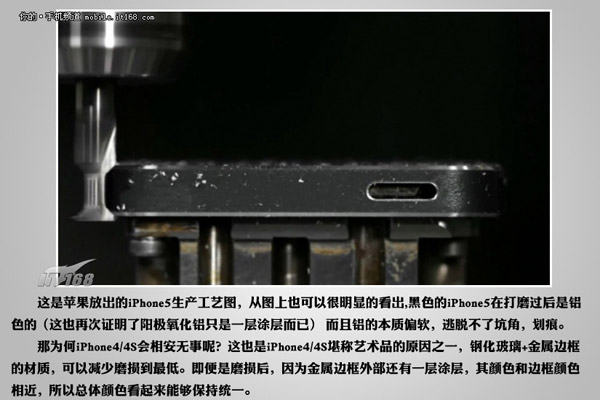 在發(fā)布上我們就知道,為了減輕重量,Phone5背殼以及邊框采用的是陽極氧化鋁材質(zhì)。由于陽極氧化鋁材質(zhì)極易磨損,因此iPhone5(特別是黑色版)背殼以及邊框的陽極氧化鋁材質(zhì)是否耐磨便成為了一個大家十分關(guān)注的話題。
