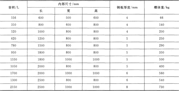 計(jì)算出槽體內(nèi)部尺寸后,再按表8-3規(guī)格化。如需要槽襯,則尺寸應(yīng)適當(dāng)加大