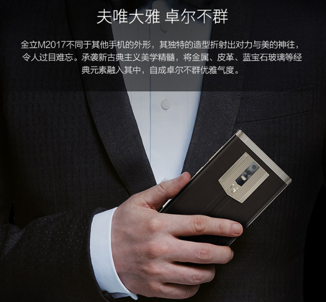 在產品布局上,金立從沒跳入低價競爭的泥潭,反而一直在布局中端和高端市場,特別是最高端的商務市場。2017年即將到來之際,金立M2017發(fā)布,獲著名導演馮小剛和夫人徐帆攜手代言,再一次拔高了我們對這款高端商務旗艦的期待。